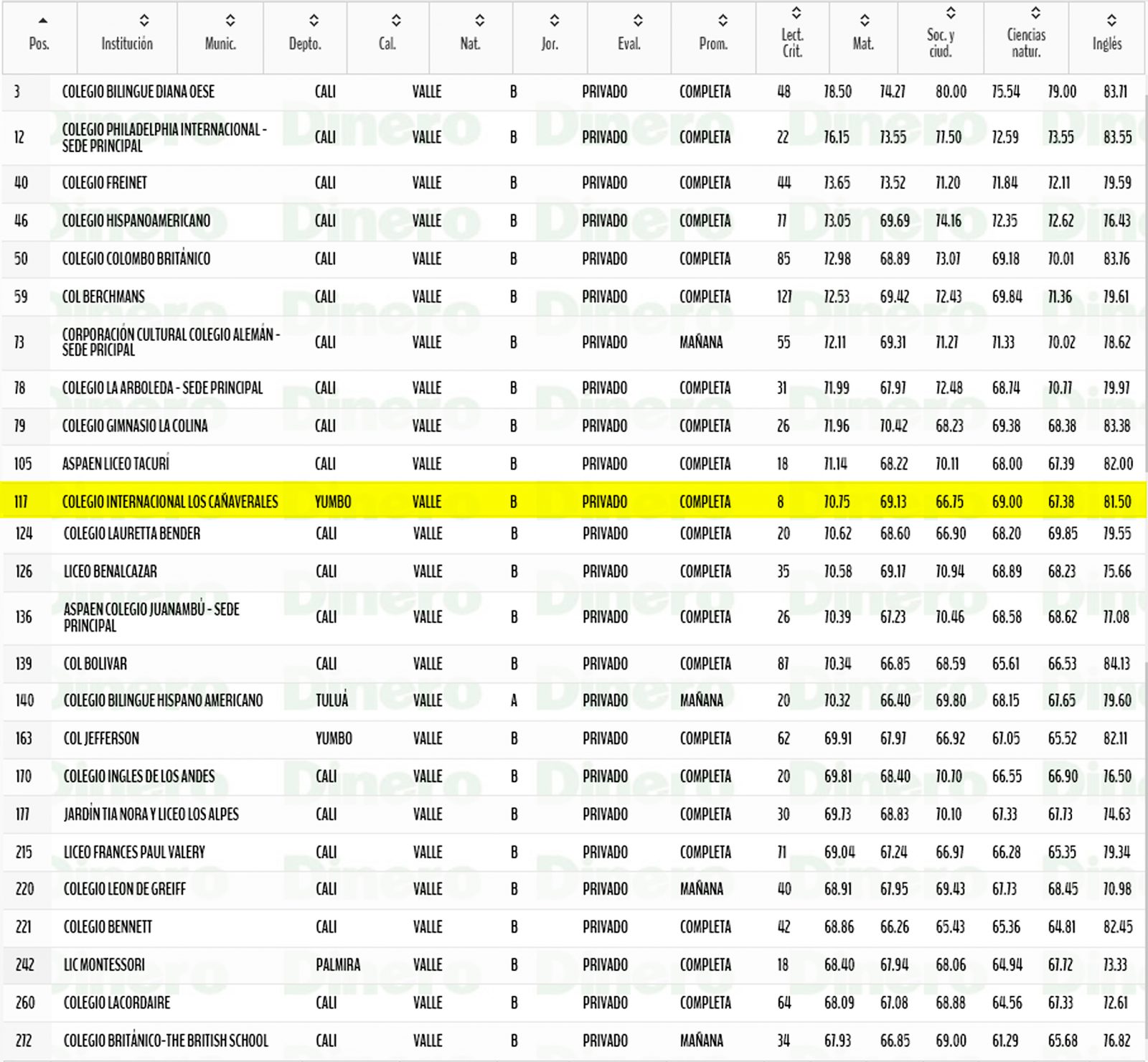 De acuerdo a la publicación más reciente de la Revista Dinero, sobre el Ránking de los mejores colegios de Colombia en 2018, ocupamos el puesto número 11 entre los Colegios de Cali y el Valle del Cauca y el puesto 117 entre las 13.429 instituciones privadas y oficiales de calendarios A y B de Colombia. Resultados que nos llenan de orgullo y motivación en nuestro esfuerzo continuo y sostenido, por ofrecer educación integral de calidad a nuestros niños y jóvenes.