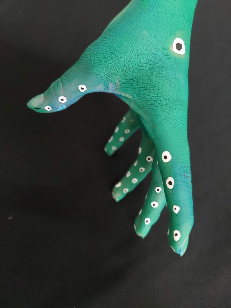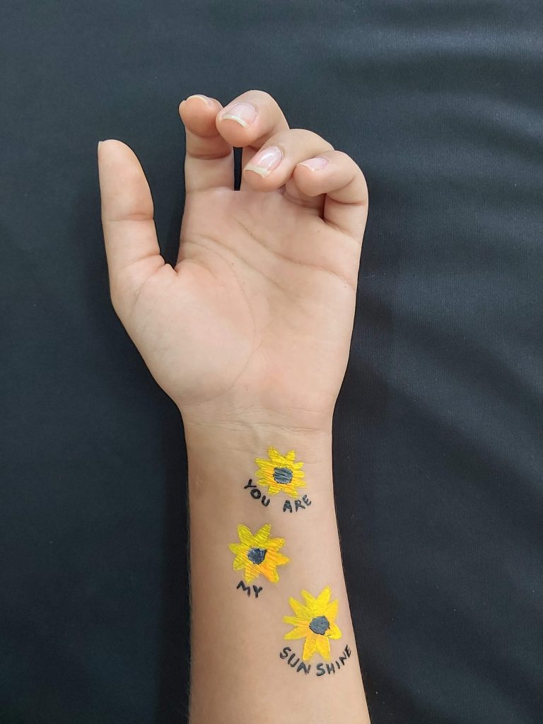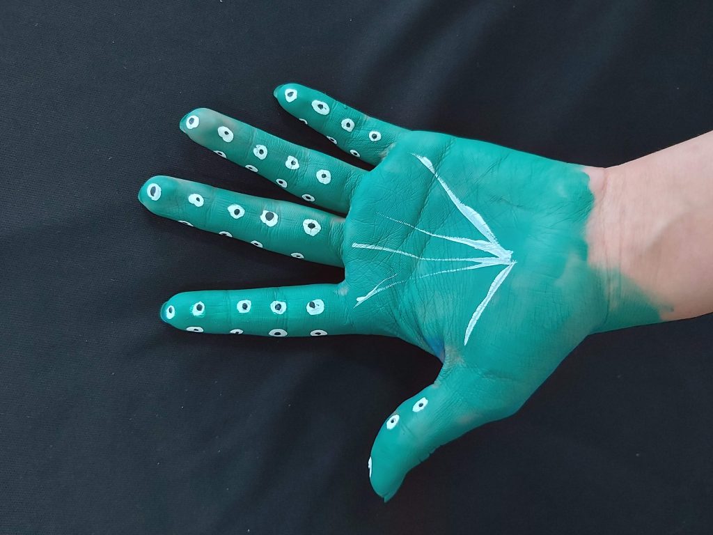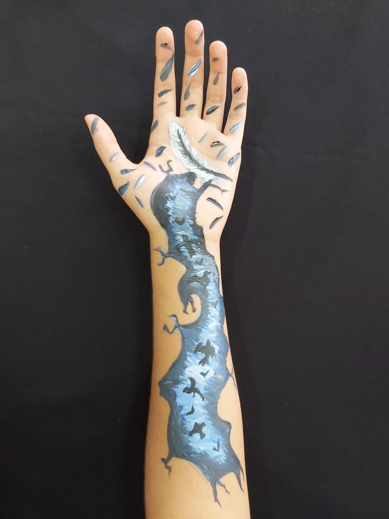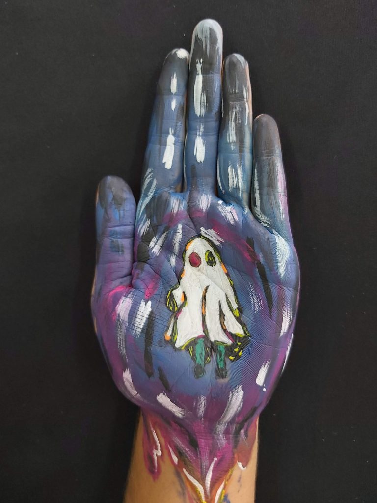 Para explorar el body art, primero investigaron sobre este concepto que se traduce como “arte en cuerpo” o “arte corporal”, luego buscaron una fotografía que les permitiera aplicar lo aprendido y después se pintaron a sí mismos. Este fue el resultado: